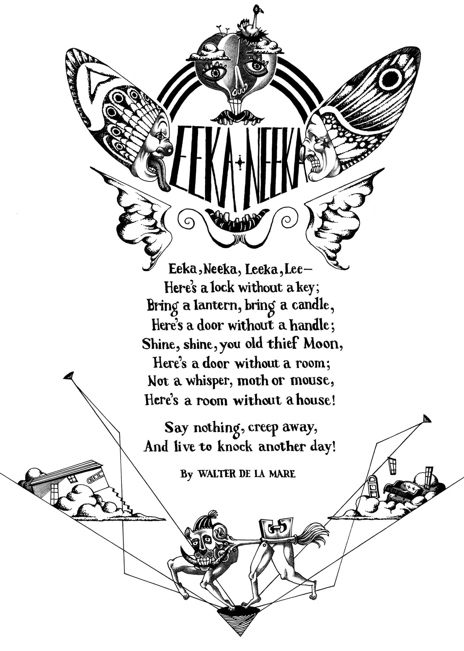 Eeka Neeka Illustration, Narrative “Eeka Neeka Trilogy” (2010) From the drawing series of nursery rhymes and poems. These drawings were published in the poetry magazine Pen Pusher Magazine-Issue 16: https://www.penpushermagazine.co.uk/magazine/issues/article/384/index.html